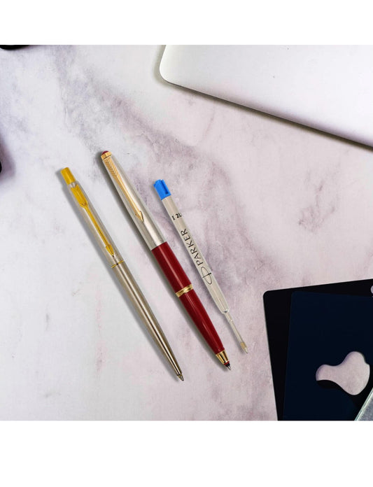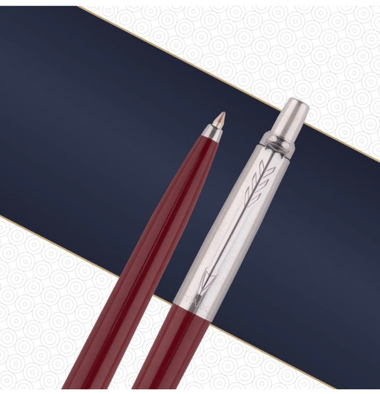 Parker Jotter Standard Chrome Trim Ball Pen| Red Body Color | Ink Color -Blue