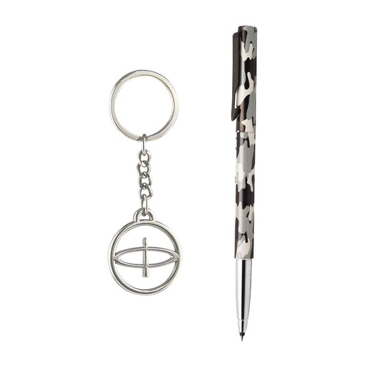 Parker Vector Camouflage Gift Set - Roller Ball Pen & Parker Logo Keychain (Black Body, Blue Ink), 2 Piece Set