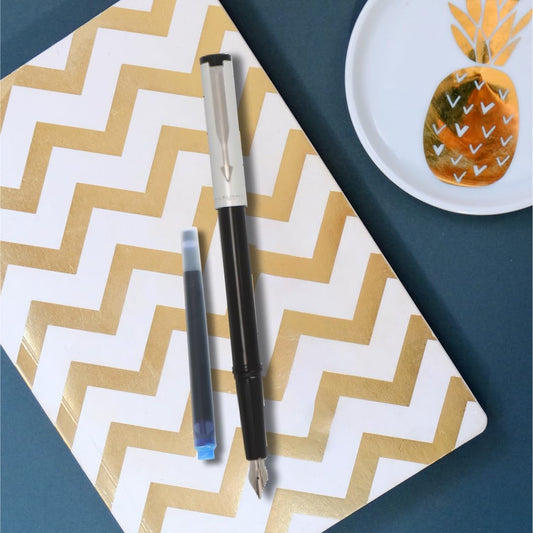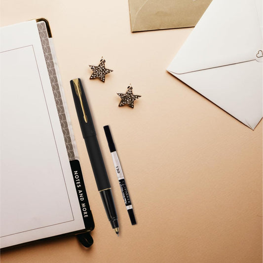 Parker FAB Gift set| Parker Frontier Fountain Pen (Matte Black with Gold trim) | Includes Ink refill