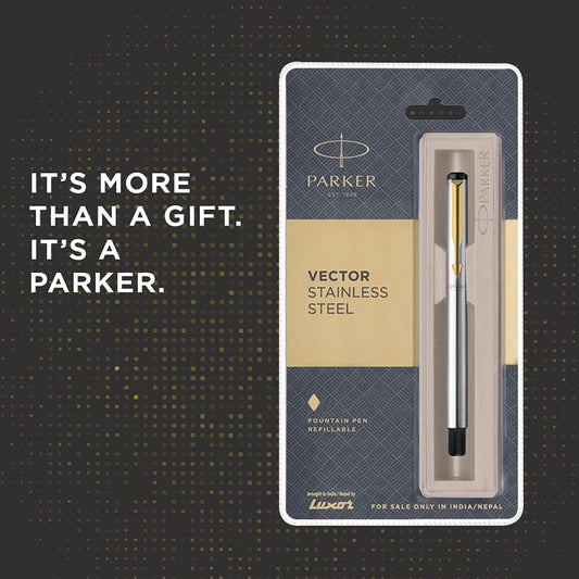 Parker Vector Mettalix Silver Trim Fountain Pen With Free Quink Blue Ink Bottle (Ink - Blue)