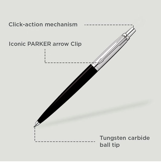 Parker Jotter Standard Chrome Trim Ball Pen| Black Body Color| Ink Color -Blue |