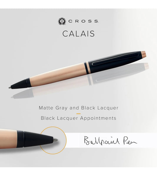 Cross Calais Brushed Rose Gold Plate and Black Lacquer Ballpoint Pen AT0112-27