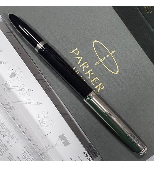 Parker 51 Fountain Pen | Black Barrel with Chrome Trim | Nib with Blue Ink Cartridge | Gift Box