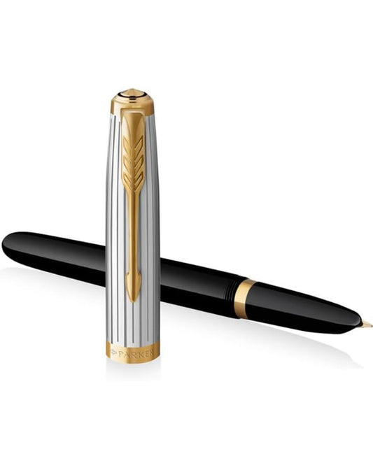 Parker 51 Premium Collection Black Gold Trim Fountain Pen (Medium nib) | Free Blue Ink Cartridge |